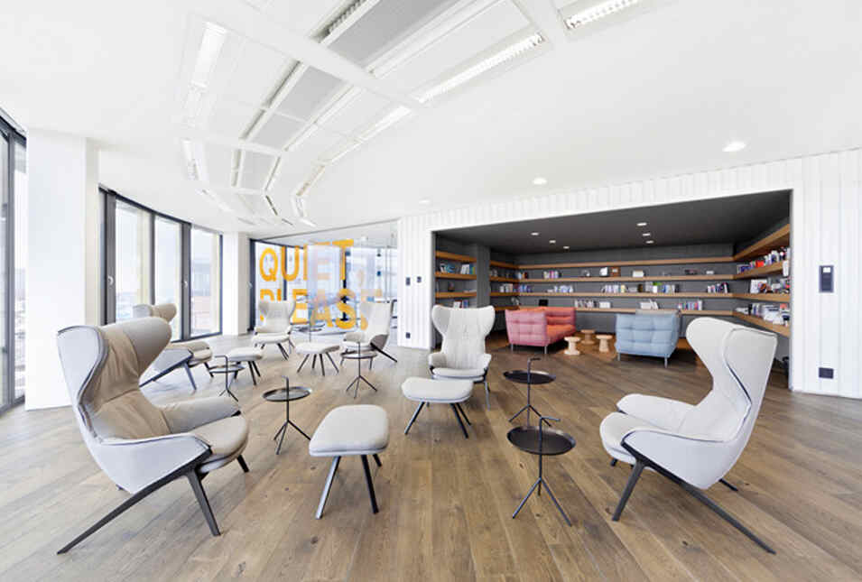 設(shè)計(jì)介紹:好玩的辦公室,體育館、娛樂(lè)室、游戲室、創(chuàng)造放松的空間,石頭型的多彩座椅,更顯趣味性,粉色的沙發(fā)是休息的法寶,并且設(shè)置的有圖書(shū)館,供人們休息室查閱,軟裝的座椅舒適,實(shí)用,還有用餐區(qū),木質(zhì)的座椅更加安全,健康,照片墻以綠色為背景顯得清晰明了,人性化,設(shè)計(jì)了體育館,員工們健身娛樂(lè)。