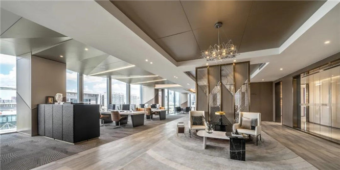 1、時(shí)尚開(kāi)放式辦公室設(shè)計(jì):前臺(tái)是一塊非常漂亮的天然石材,紋理豐富,是一件藝術(shù)品,為整個(gè)空間定下基調(diào)。運(yùn)用暖系色調(diào)融合啡色作為點(diǎn)綴,質(zhì)感豐富,對(duì)比分明,體現(xiàn)了大都會(huì)的時(shí)代感。大氣及細(xì)致并存,將建筑與藝術(shù)結(jié)合,展現(xiàn)剛?cè)岵⒅?,美觀與實(shí)用兼?zhèn)涞霓k公空間。開(kāi)放式辦公空間設(shè)計(jì)具有優(yōu)良的自然采光,高效實(shí)用,豐富多變的純凈度,摒棄不必要的復(fù)雜思想,更容易專注于工作。同時(shí),木材、皮革和地毯的溫暖觸感帶來(lái)柔軟感,與固體和干燥結(jié)構(gòu)的強(qiáng)度相撞。隨著光影的變化,演繹出靈活的層次感,為空間營(yíng)造優(yōu)雅的平衡感。